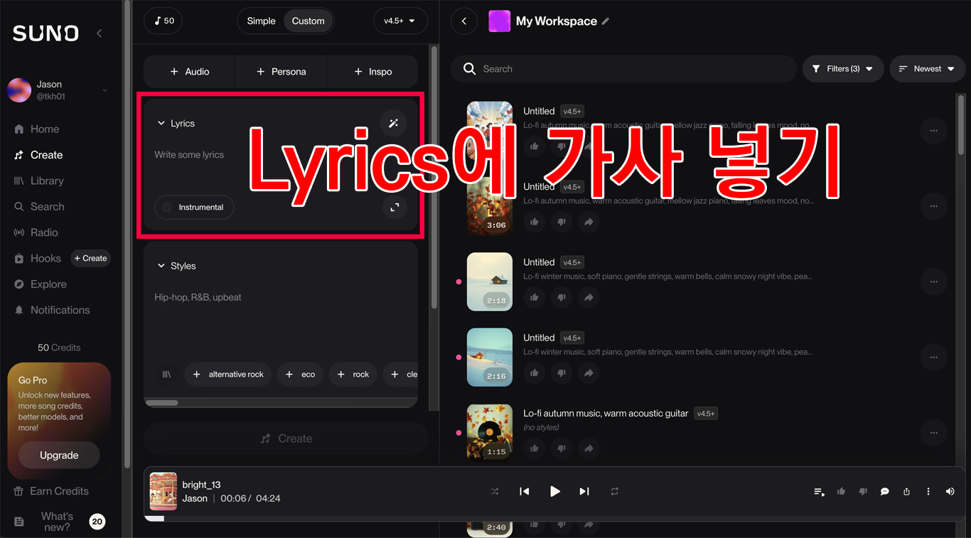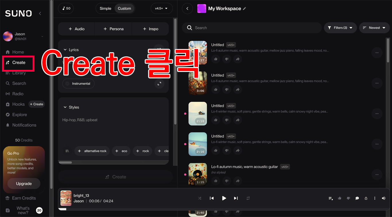 다시 suno로 돌아와서 노래 오른편 ... 클릭! - Song Details 선택